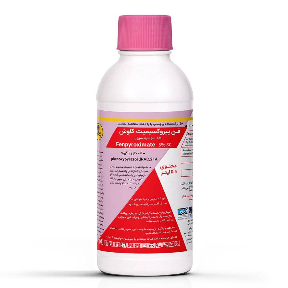 بسته بندی: کنه کش فن پيروكسيميت پلی اتیلن ۰.۵ لیتر, پلی اتیلن ۱۰۰ میلی لیتر بسته بندی میشود.